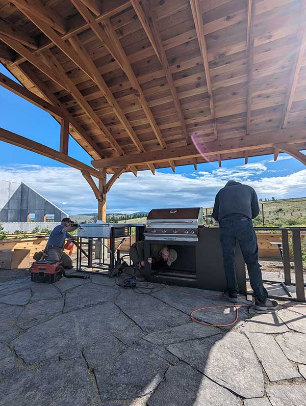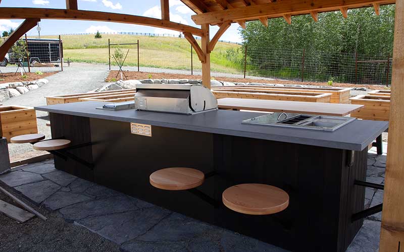 These clients now have an outdoor kitchen that provides a perfect space for them to entertain and share the fruits of their labor. This space enhances the farm's community spirit but also allows visitors to cook and enjoy meals made from fresh, sustainably grown produce. The outdoor setting offers a beautiful, natural backdrop, making it an ideal spot for gatherings and celebrations, further connecting people to the land and the sustainable practices that nurture it.